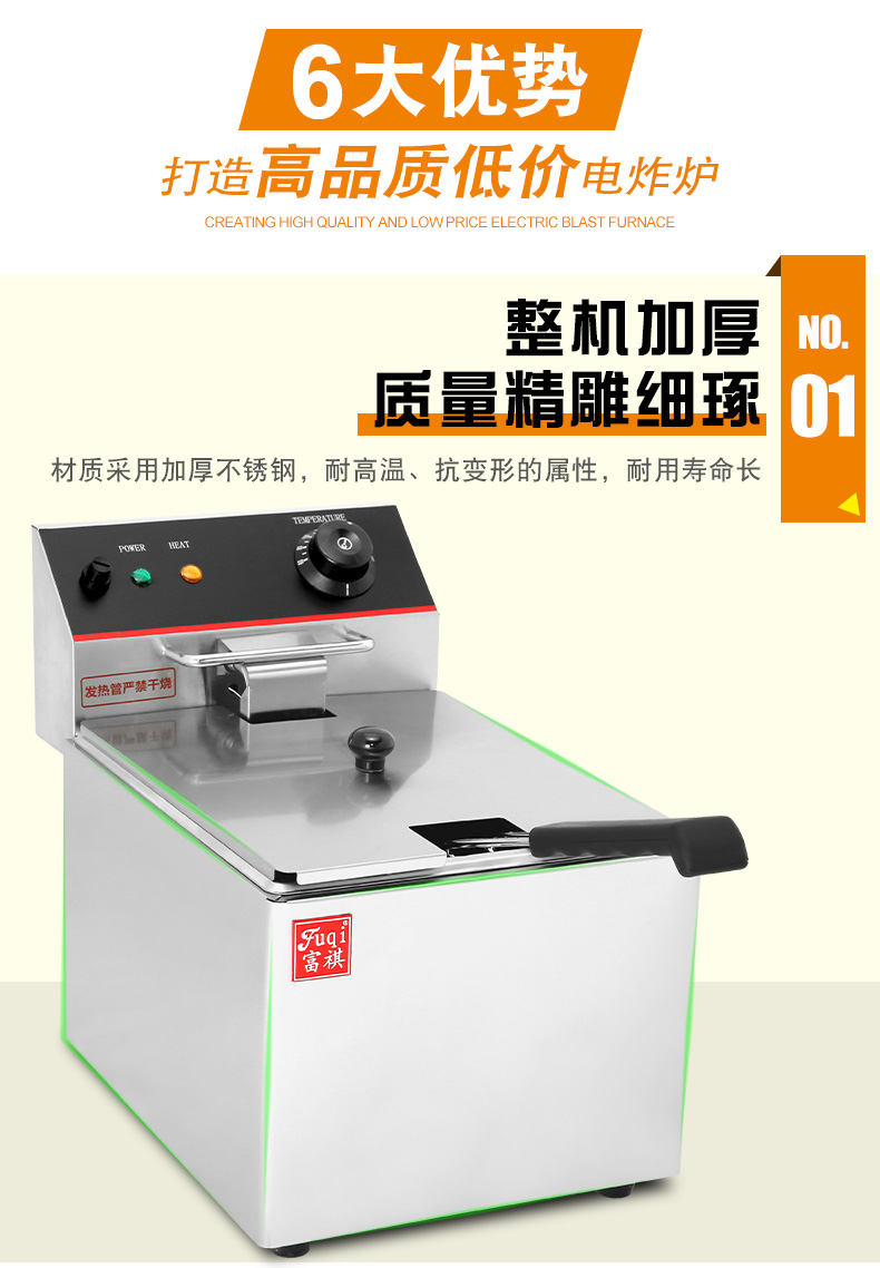 首頁 >> 產品展示 >> 炸爐 >> 富祺DF-8L台式單缸單篩電炸爐