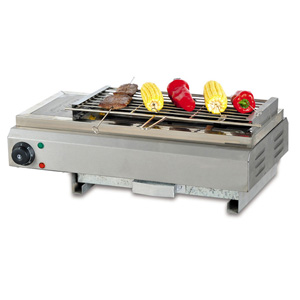 2、火山石燒烤爐接通電源,綠色電源指示類亮,順時針方向分別旋轉溫控器,把所需的溫度值對準所需溫度位置,此時黃色指示燈亮,此時電流已供至本爐,加熱管開始工作,當溫度升到所需溫度時,溫控器能自動切斷電源,同時黃色指示燈息,加熱管停止工作.當溫度略有下降,溫控器則能自動接通電源,黃色指示燈亮,電熱管恢複加熱,溫度上升,如此反複循環,以保證溫度在設定範圍內恒定.根據燒烤不同規格的食品,調節所需的溫度,可使製作的食品得到理想的效果.同時可調節燒烤網的高底來燒烤不同的食品.