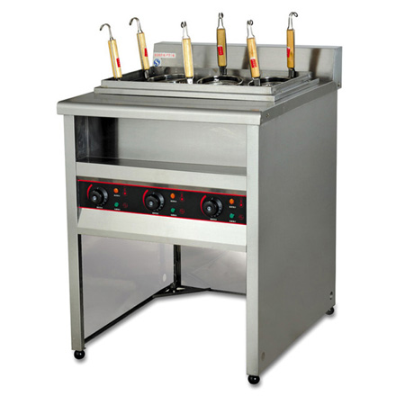 煮麵爐也稱煮麵機、煮食爐、麻辣燙機等。煮麵爐種類較多,按照外形不同可分為立式煮麵爐和台式煮麵爐,按照煮麵爐孔的多少分四頭煮麵爐、六頭煮麵爐等,按照使用燃料不同可分為電熱煮麵爐和燃氣煮麵爐。使用煮麵爐既可以煮麵,也可以煮粉、煮米線、煮麻辣燙等,而且分格的煮麵爐也可以分開同時煮不同的食物,是很多中式快餐店、食堂、小吃店理想的煮麵設備!