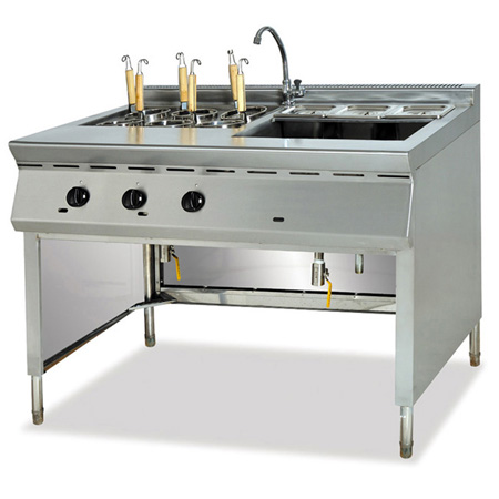 很多朋友還不太清楚有專門的煮麵設備,以為就像家裏煮麵差不多的,在生活節奏比較快捷的大中城市,煮麵爐已經成為很多中式快餐店的專用煮麵設備,煮麵爐市場需求比較大,原來都是中型以上快餐店采購,現在很多街頭小店也使用煮麵爐,他們采購小型煮麵爐,有的用來做早點,用煮麵爐煮麵條、煮米線等,也有的在寫字樓集中的底商開店,可以有電熱煮麵爐煮酸辣粉,也可以煮麻辣燙,代替了傳統的麻辣燙機器。如果條件允許的地方,一般都采用節能新型燃氣煮麵爐,主要集中在學校食堂、機關食堂等場所,燃氣節能煮麵爐煮麵非常快捷,而且節能環保,所以非常受歡迎!
