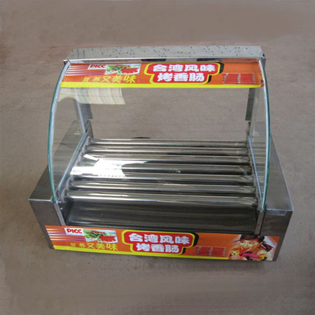 烤熱狗機又叫台灣熱狗機、熱狗機、烤香腸機 、烤腸機等,適用於烘烤熟製香腸。采用不鏽鋼電熱管間接加熱,受熱均勻,操作簡單,清潔美觀,自動溫控,節約電能。實為各飲食店、食品商店、肉製品專賣店、快餐店出售熱香腸或配製快餐食品之理想機器。全自動360滾軸香腸機,全自動恒溫控製,360’旋轉,受熱均勻,溫度可調。烤製時香腸鮮亮香潤,機器設備操作簡便,運轉安靜、高效、衛生、美觀,適於在各種場所擺設銷售。