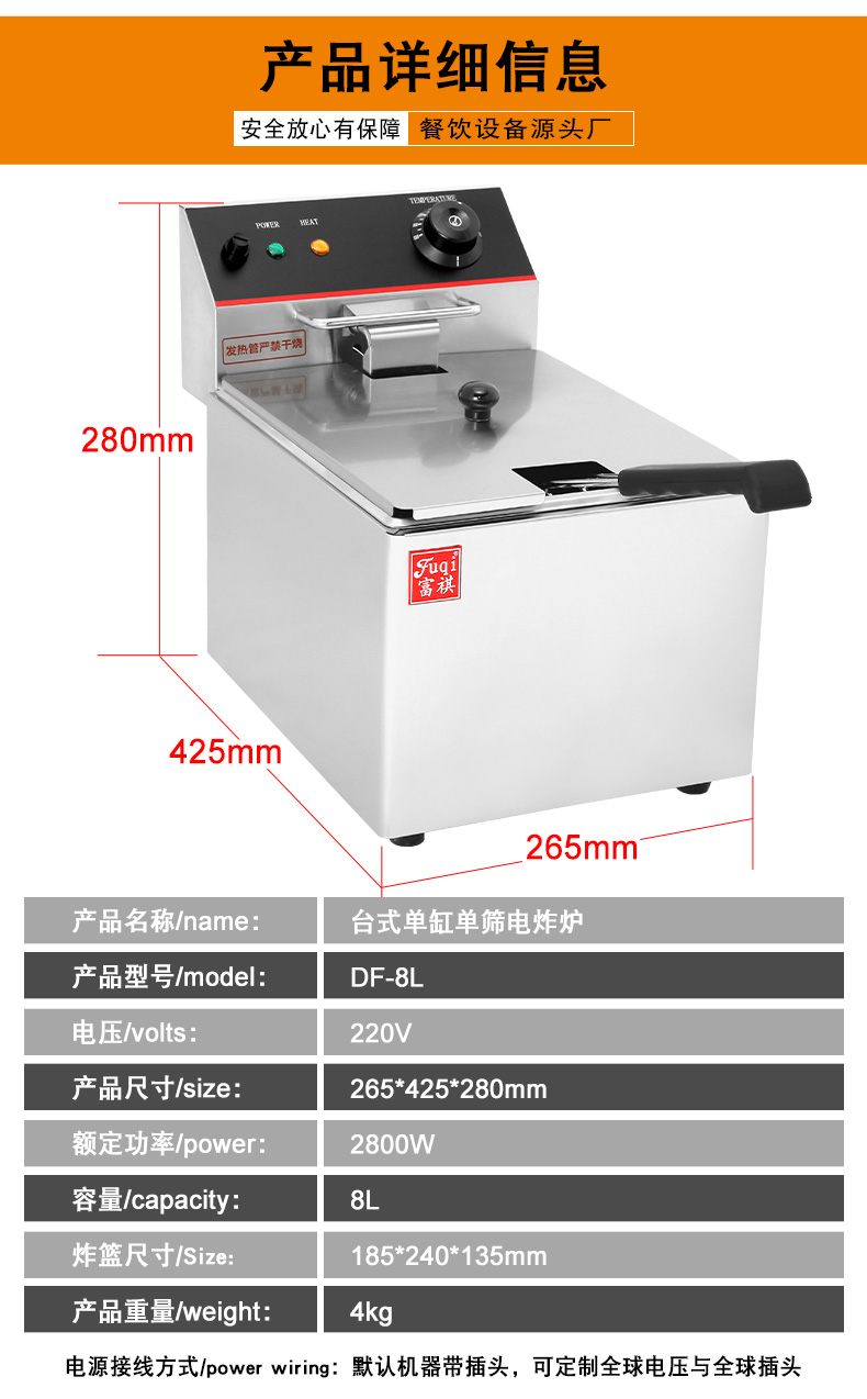 首頁 >> 產品展示 >> 炸爐 >> 富祺DF-8L台式單缸單篩電炸爐