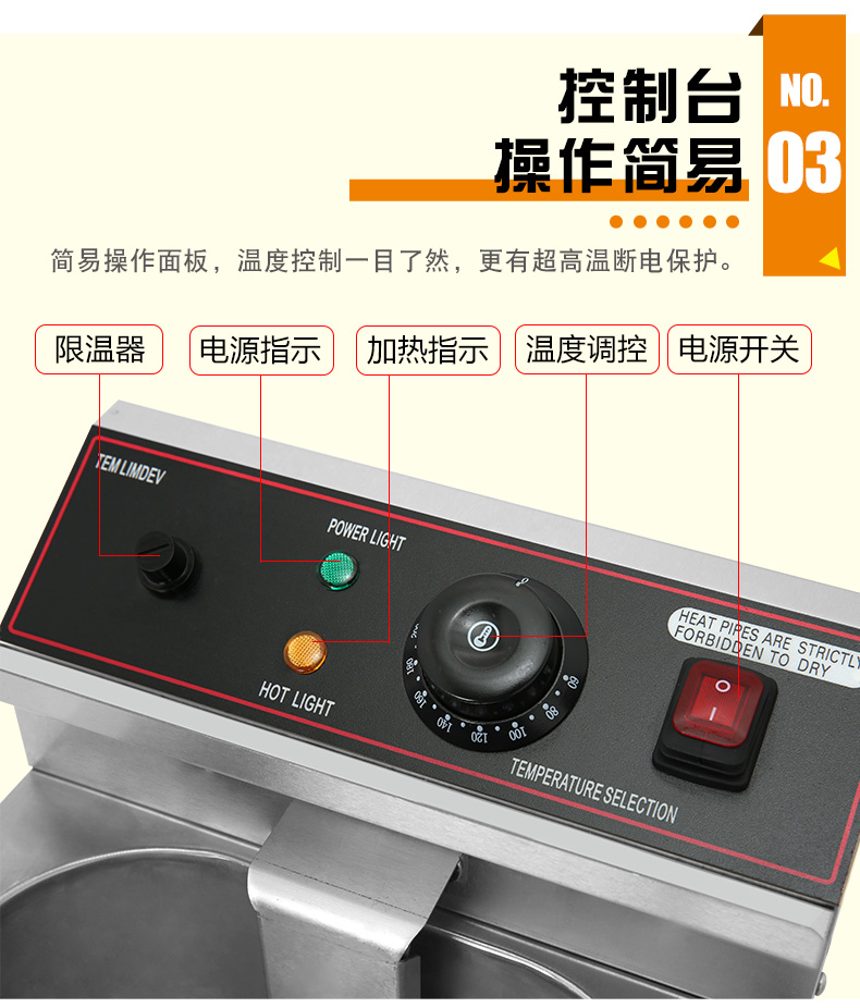 首頁 >> 產品展示 >> 炸爐 >> 富祺DF-10L台式單缸單篩電炸爐