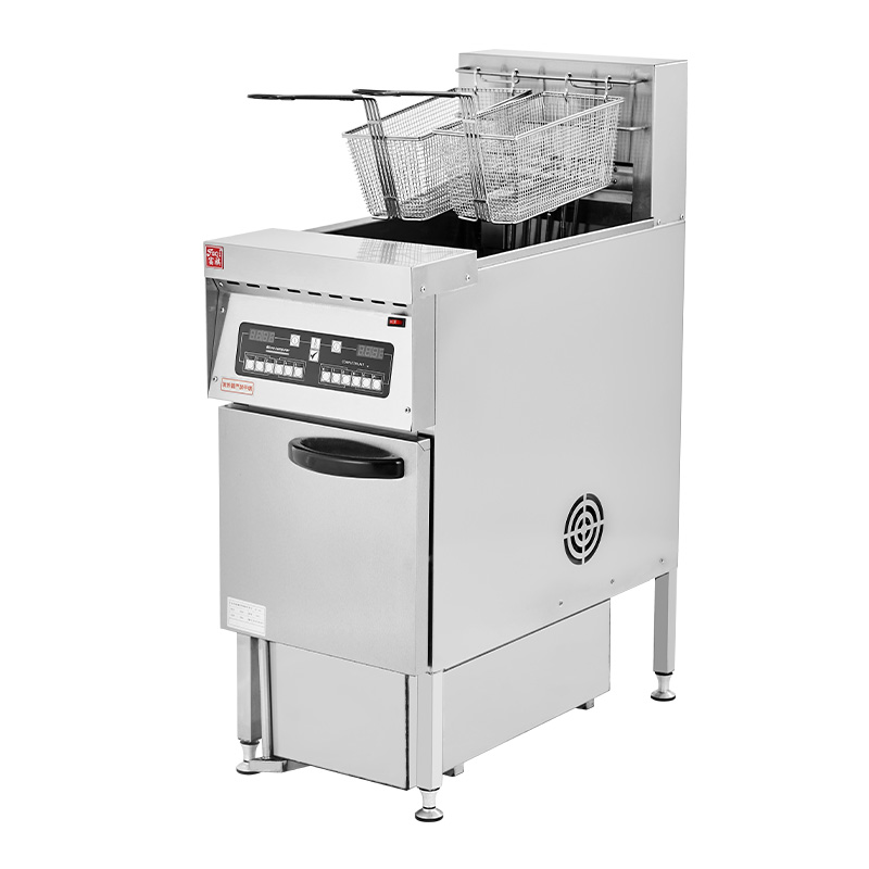立式電腦單缸雙篩炸爐連濾油車