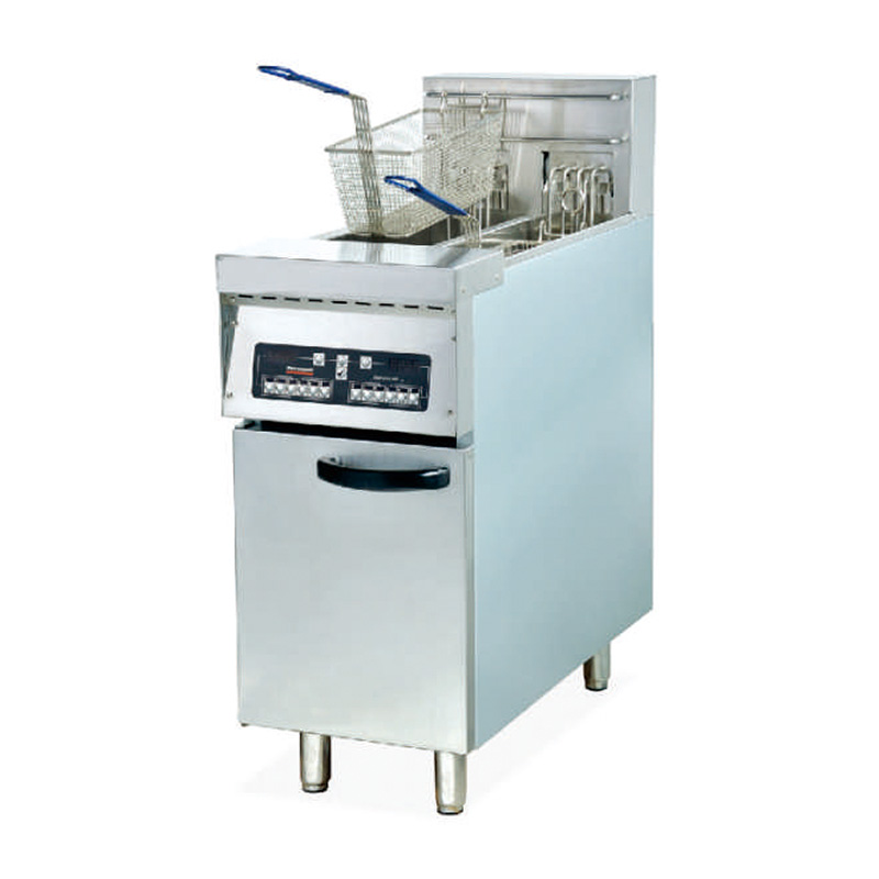 特性:電腦程序控製,專為高產量烹炸、快餐店炸薯條(餅、圈)、雞塊、魚柳等而設計,精確恒溫 2-3度 (普通電炸爐為15-20度),2.精確定時,抖籃提醒3.防止油品碳化(冷區設計),易於收集烹炸區掉下的碎渣與裹粉。操作安全 (提起發熱管自動防幹燒),熱電阻感應探頭,感應區域寬,快速靈敏。上提式發熱管,便於清潔鍋缸。單缸炸爐、雙缸炸爐,不同款式,滿足不同需求。全不鏽鋼爐身。電腦程序控製,可設置7個菜單,每個菜單有對應按鍵直接呼出,專為快餐店炸薯條(餅、圈)、雞塊、魚柳等而設計,采用特大功率進口發熱元件,升溫快,效率高,容量大,冷區設計大口徑排油管,油炸麵積為42X35cm,帶自鎖安全泄油閥。